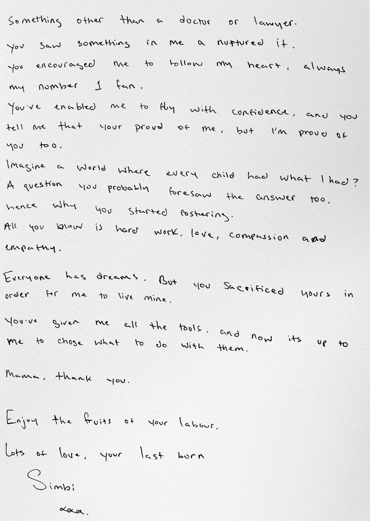 Created by Ketchum London and directed by Lainey Richardson at Caviar, in the letter Simz thanks her mum for supporting her along her journey, giving her the tools to reach her dreams and being her number one fan.